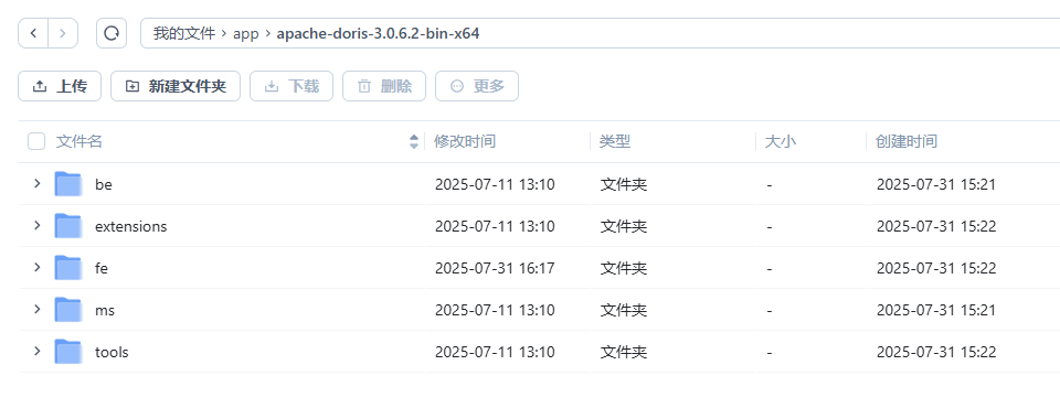 tar -xvf apache-doris-3.0.6.2-bin-x64.tar.gz